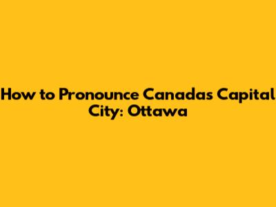 How To Pronounce Canada's Capital City