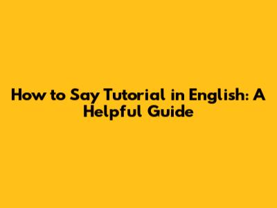 How To Say 'Tutorial' In English: A Helpful Guide