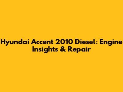Hyundai Accent 2010 Diesel: Engine Insights & Repair