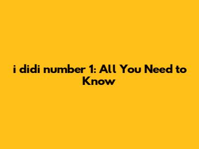 I Didi Number 1: All You Need To Know