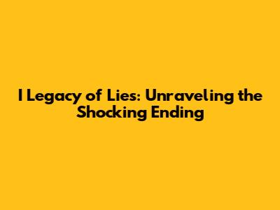 I Legacy Of Lies: Unraveling The Shocking Ending