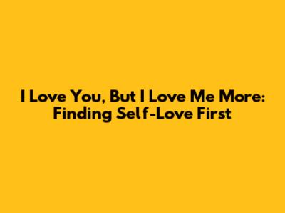 I Love You, But I Love Me More: Finding Self-Love First