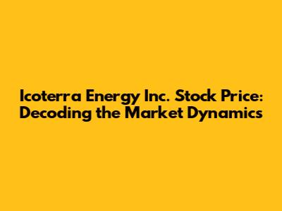 Hey there, finance enthusiasts! Let's dive deep into the fascinating world of Icoterra Energy Inc. stock. We're going to explore its stock price, dissect market trends, and give you a glimpse into what might be on the horizon. This isn't just about numbers; it's about understanding the forces that drive the stock market and how they impact a specific company. Whether you're a seasoned investor or just starting out, this breakdown of Icoterra Energy's stock is designed to give you valuable insights. So, grab your favorite beverage, sit back, and let's get started. The stock market can seem like a wild ride, with ups and downs that can make your head spin. But understanding the factors that influence a stock's price, like Icoterra Energy Inc., can help you navigate these fluctuations with more confidence. We will be looking at what drives the price. We will examine the core of Icoterra Energy Inc. and its relation to the price. We will discuss the risks and the potential opportunities.