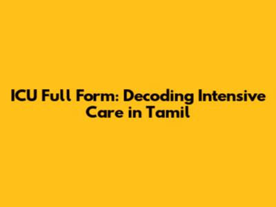 ICU Full Form: Decoding Intensive Care In Tamil