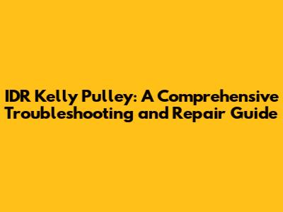 Troubleshooting Your IDR Kelly Pulley: Step-by-Step Guide