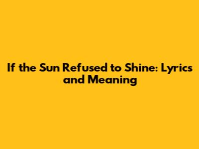 If The Sun Refused To Shine: Lyrics And Meaning