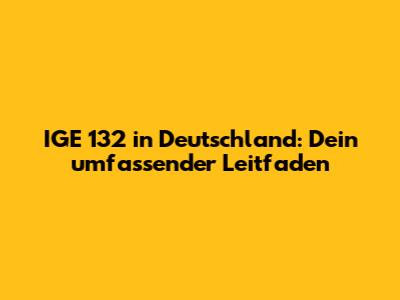 IGE 132 In Deutschland: Alles, Was Du Wissen Musst!