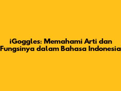 IGoggles: Memahami Arti Dan Fungsinya Dalam Bahasa Indonesia