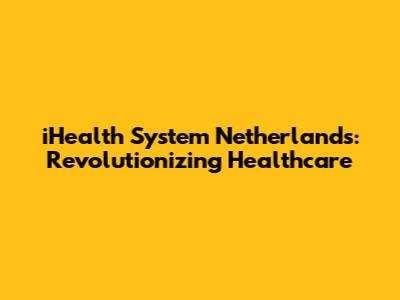 IHealth System Netherlands: Revolutionizing Healthcare