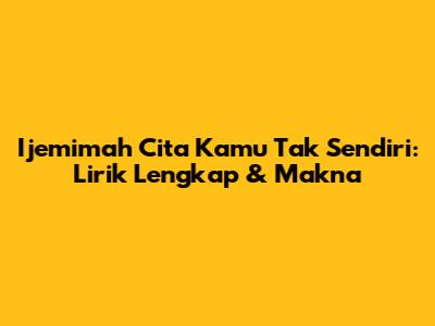 Hey guys, tahukah kamu tentang lagu "Cita Kamu Tak Sendiri" dari Ijemimah? Lagu ini lagi hits banget nih, dan banyak banget yang penasaran sama liriknya. Nah, kali ini kita bakal kupas tuntas semua tentang lagu ini, mulai dari lirik lengkapnya, makna di baliknya, sampai kenapa lagu ini bisa bikin hati pendengarnya meleleh. Siap-siap ya, karena kita bakal menyelami dunia Ijemimah dan karya terbarunya ini!
