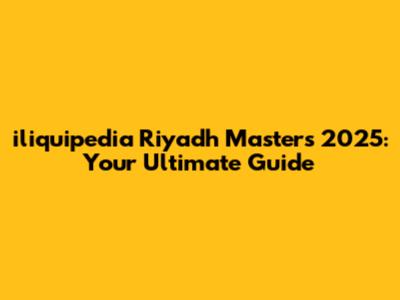 Iliquipedia Riyadh Masters 2025: Your Ultimate Guide