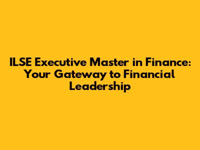 ILSE Executive Master In Finance: Your Gateway To Financial Leadership