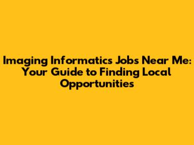 Imaging Informatics Jobs: Find Opportunities Near You