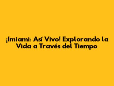 Imiami: Así Vivo - Explorando La Vida En El Tiempo