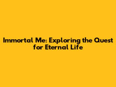 Immortal Me: Exploring The Quest For Eternal Life