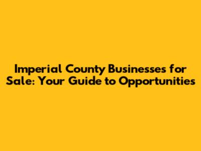 Imperial County Businesses For Sale: Your Guide To Opportunities