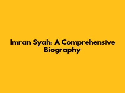 Imran Syah: Biography, Life, Career, And Legacy