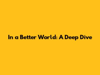 In A Better World: A Deep Dive