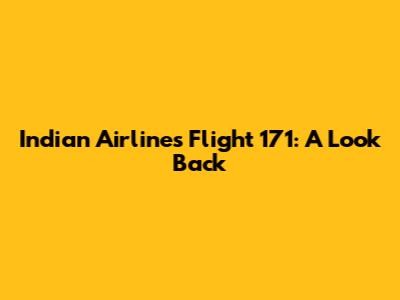 Indian Airlines Flight 171: A Look Back