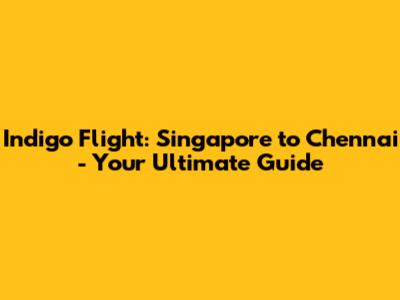 Indigo Flight: Singapore To Chennai - Your Guide