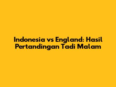Indonesia Vs England: Hasil Pertandingan Tadi Malam