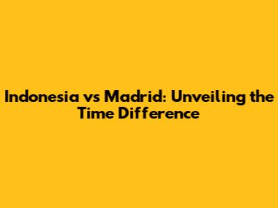 • If you're in Western Indonesia (WIT, UTC+7), the time difference is 6 hours. Madrid is behind Indonesia by 6 hours. For example, if it's 2 PM in Jakarta, it's 8 AM in Madrid.