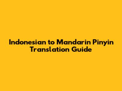 Indonesian To Mandarin Pinyin Translation Guide