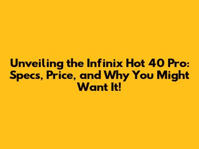 Infinix Hot 40 Pro: Specs & Price Guide