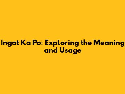 Ingat Ka Po: What It Means & How To Use It