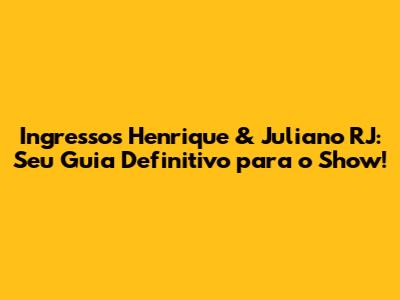 Ingressos Henrique & Juliano No Rio De Janeiro: Guia Completo!