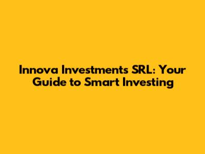Innova Investments SRL: Your Guide To Smart Investing