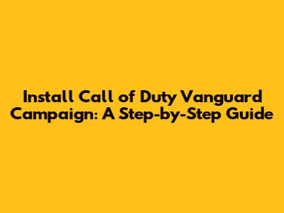 Install Call Of Duty Vanguard Campaign: A Step-by-Step Guide