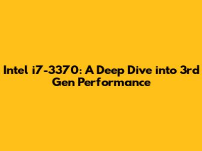 Intel I7-3370: A Deep Dive Into 3rd Gen Performance