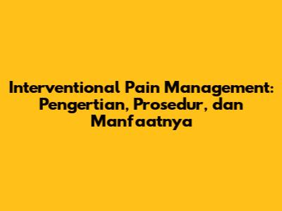 Interventional Pain Management adalah sebuah pendekatan medis yang menggunakan berbagai prosedur invasif minimal untuk mendiagnosis dan mengobati nyeri. Pendekatan ini bertujuan untuk memberikan pereda nyeri yang efektif dan berkelanjutan bagi pasien yang menderita berbagai kondisi nyeri, baik akut maupun kronis. IPM melibatkan penggunaan teknologi canggih seperti panduan fluoroskopi (sinar-X) atau ultrasonografi untuk mengarahkan prosedur dengan presisi tinggi.