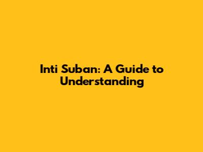 Inti Suban: A Guide To Understanding