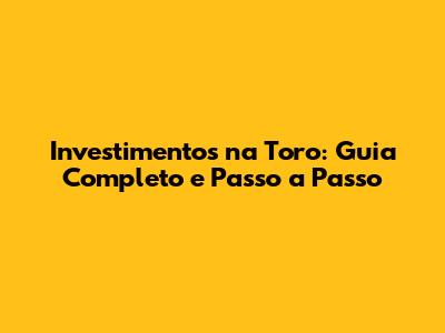 Investimentos Na Toro: Guia Completo E Passo A Passo