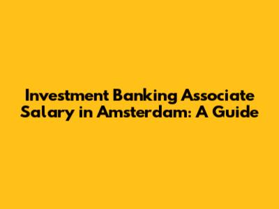 Investment Banking Associate Salary In Amsterdam: A Guide
