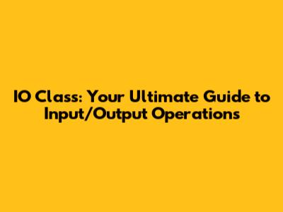 IO Class: Your Ultimate Guide