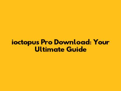 Hey everyone! Today, we're diving deep into the world of ioctopus Pro download free. If you're looking for a powerful, versatile tool to supercharge your productivity or tackle complex projects, you've come to the right place. We're going to break down what ioctopus Pro is, why it's so popular, and how you can get your hands on it without spending a dime. So, buckle up, guys, because this is going to be an informative ride!