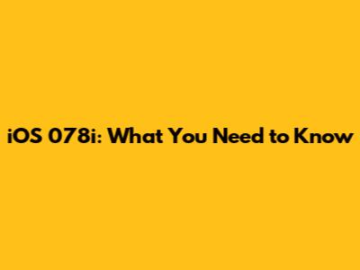 IOS 078i: What You Need To Know