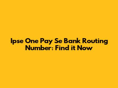 Ipse One Pay Se Bank Routing Number: Find It Now