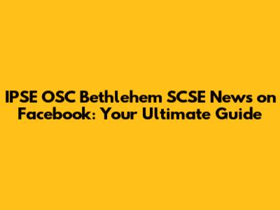 IPSE OSC Bethlehem SCSE News On Facebook: Your Ultimate Guide