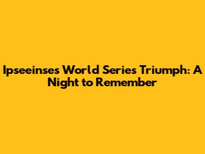 Ipseeinse's World Series Victory: A Recap