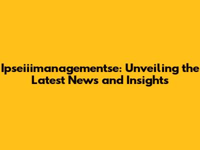 Ipseiiimanagementse: Latest News And Insights