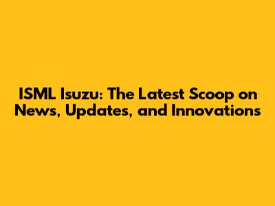 ISML Isuzu: Latest News, Updates, And Innovations