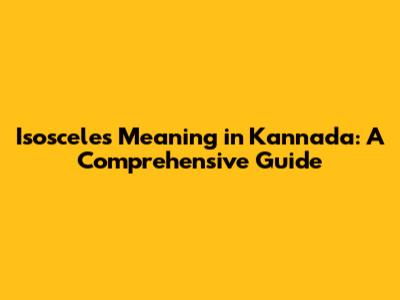 Isosceles Definition: Understanding In Kannada