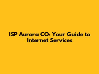 ISP Aurora CO: Your Guide To Internet Services