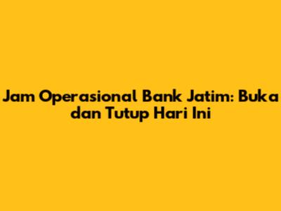 Jam Operasional Bank Jatim: Buka Dan Tutup Hari Ini