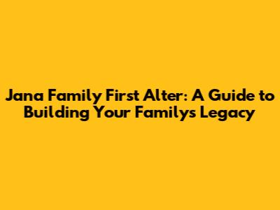 Jana Family First Alter: A Guide To Building Your Family's Legacy