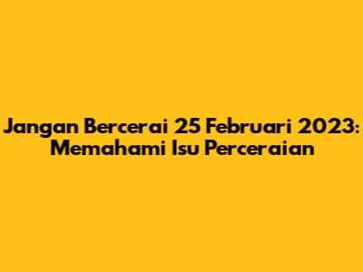 Jangan Bercerai 25 Februari 2023: Pentingnya Menjaga Pernikahan